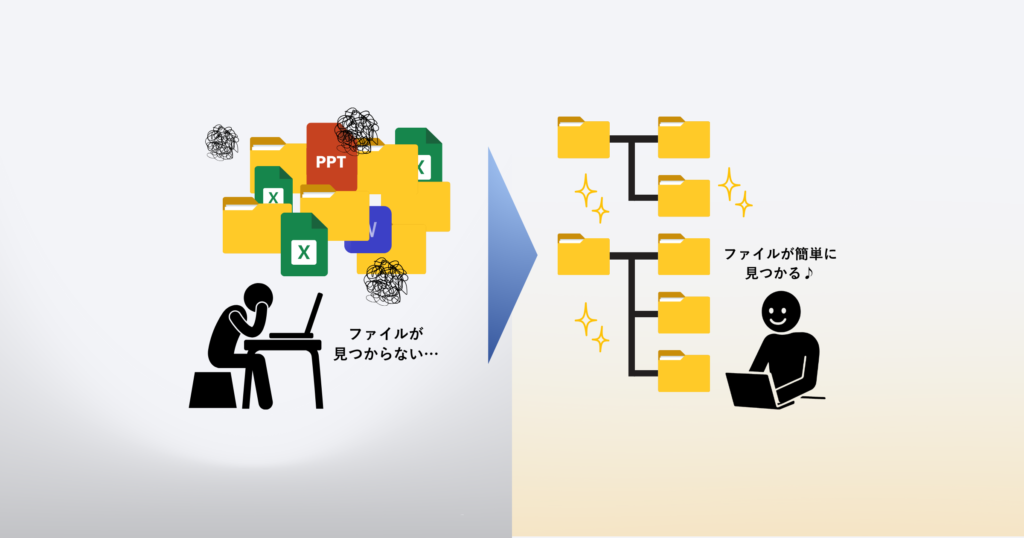 社内情報を一元的に格納する場所としての「フォルダ/共有フォルダ」の整理整頓(構築)を行うサービスです。