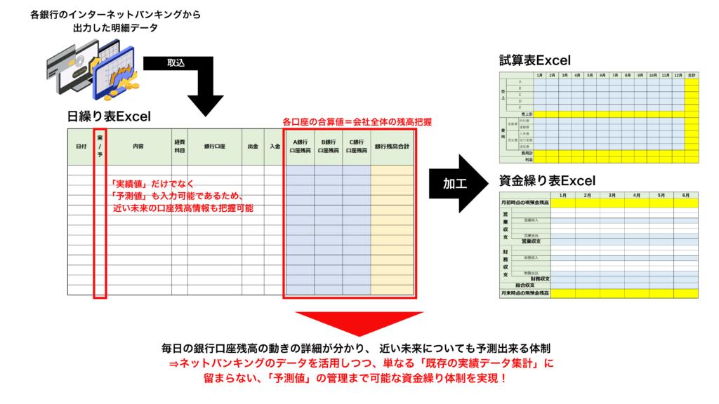 金融機関との円滑なコミュニケーションを実現するために、こちらの会社では資金繰り表を外注先に依頼して作成しておりました。